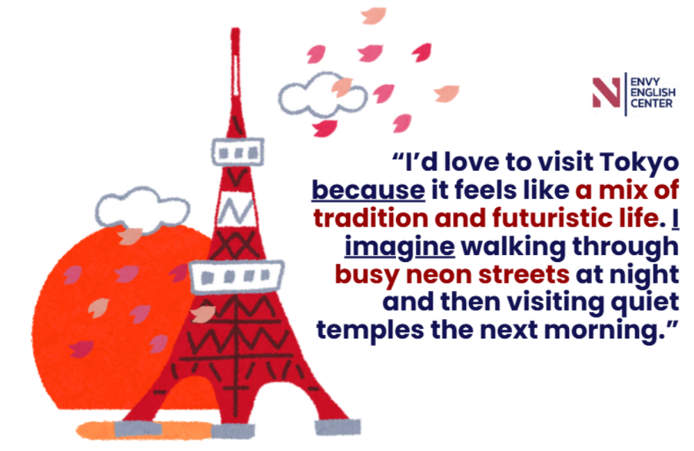 Before: "I want to visit Tokyo. It looks nice."