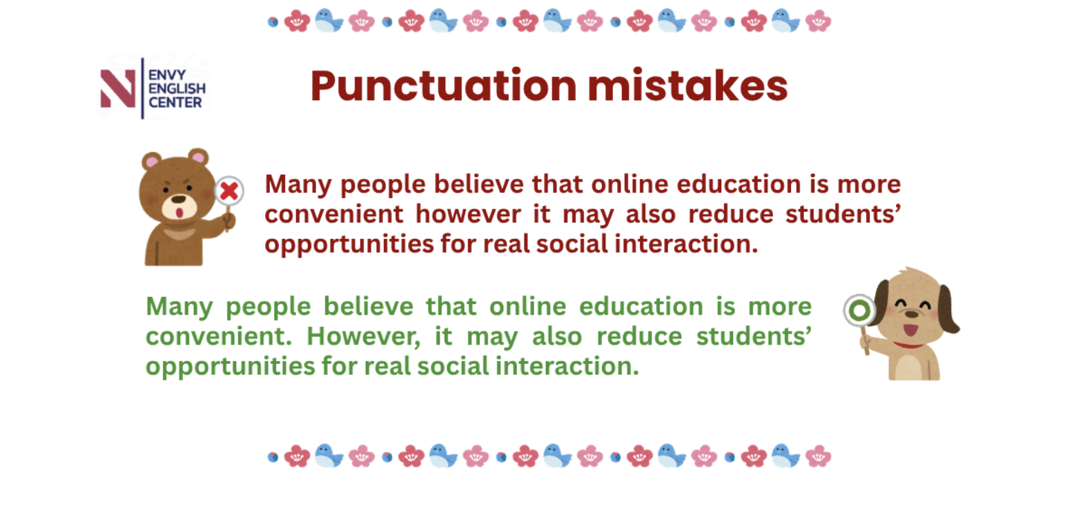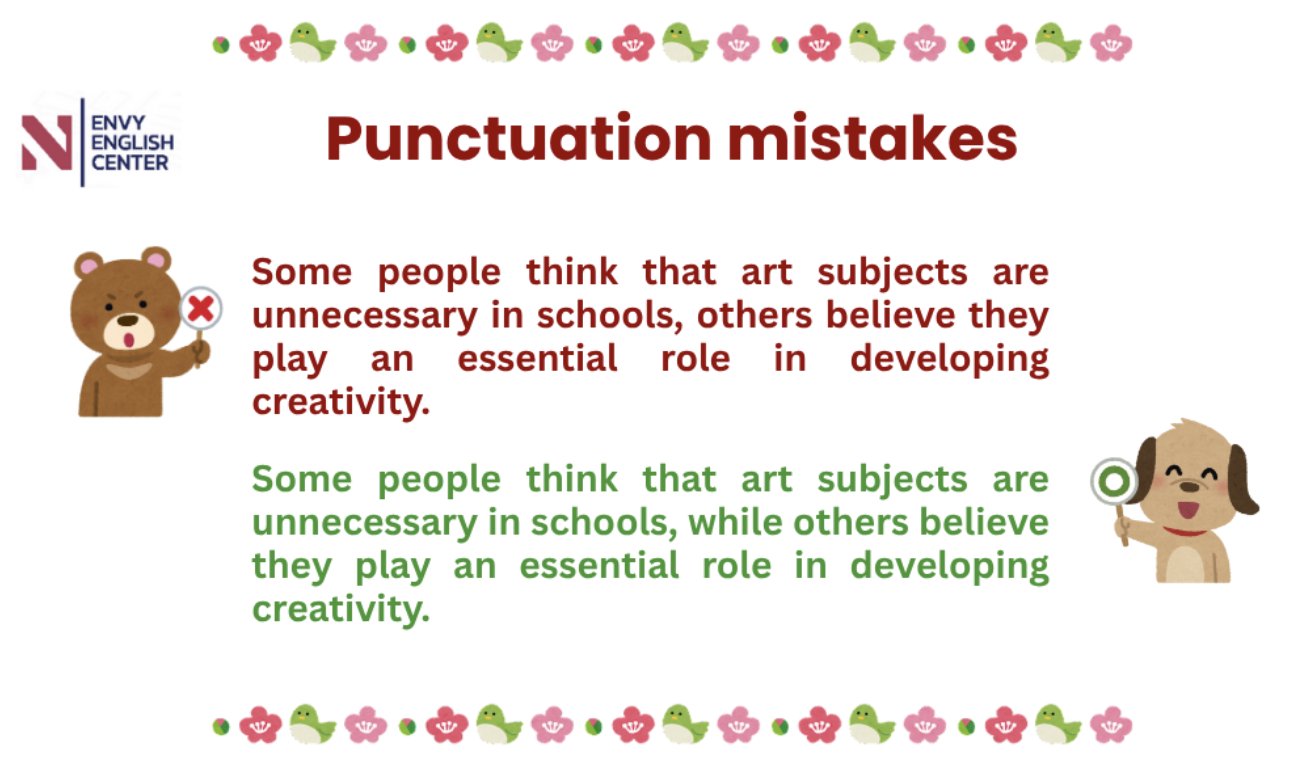 Nói cách khác, việc sử dụng sai dấu câu luôn ảnh hưởng đến thang điểm trong Grammatical Range and Accuracy và Coherence and Cohesion - vốn là 2 trên 4 trụ cột trong IELTS Writing.