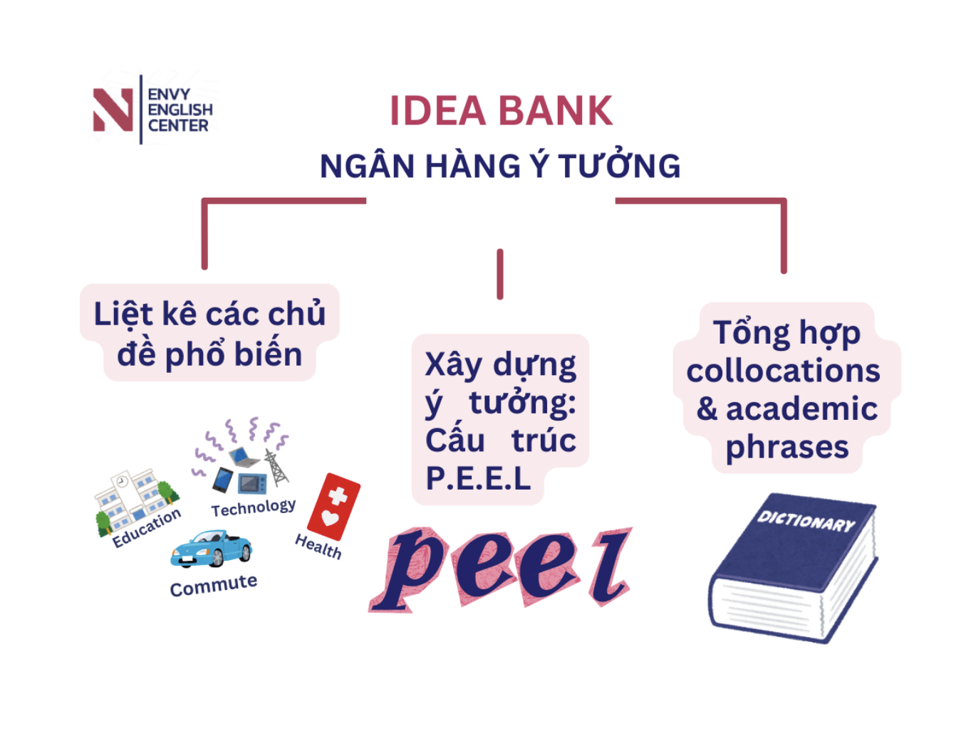 Chuẩn bị sẵn ý tưởng, ví dụ và từ vựng học thuật cho các chủ đề thường gặp (education, technology, health, environment, society...) là một phương pháp vô cùng hiệu quả.