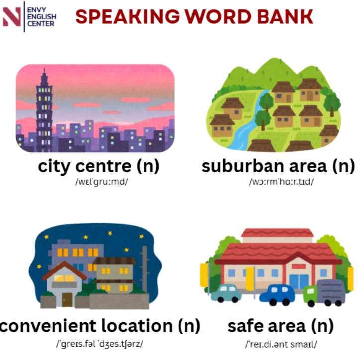 convenient location (n): vị trí thuận tiện