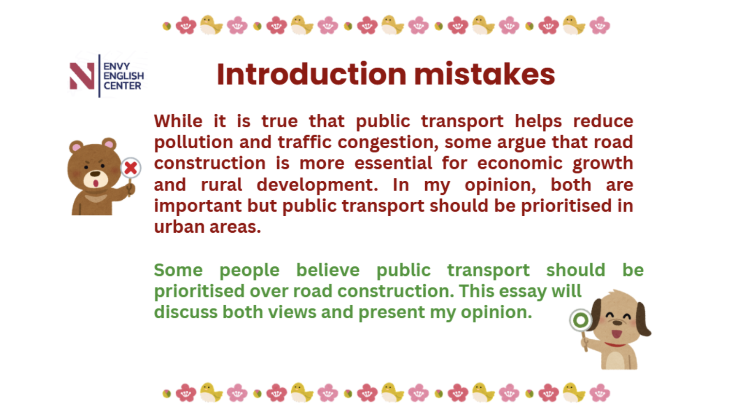 Đừng “đốt cháy giai đoạn”. Hãy để body paragraph làm nhiệm vụ triển khai chi tiết, còn introduction chỉ nêu định hướng.