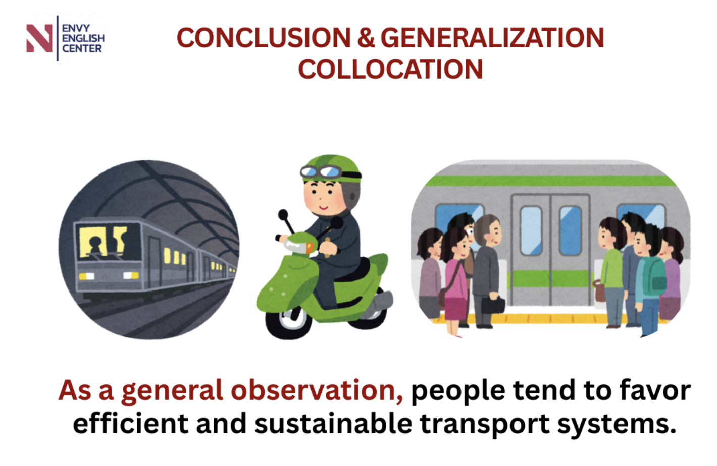 E.g. As a general observation, people tend to favor efficient and sustainable transport systems.