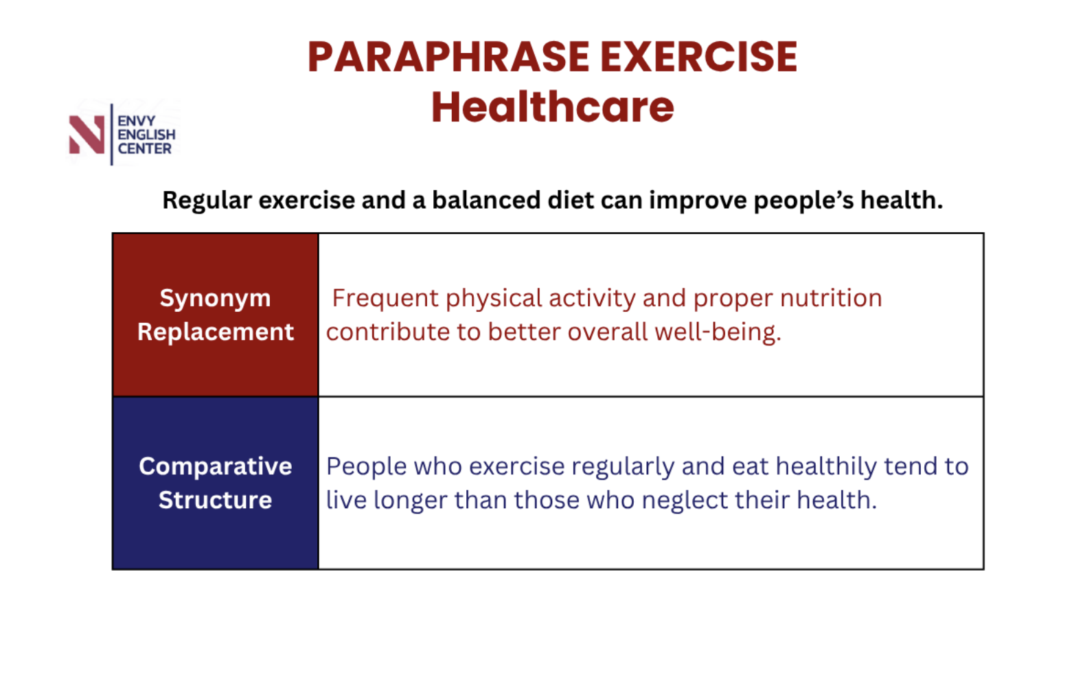 Hãy cùng ENVY luyện tập phương pháp Paraphrase đơn giản, chủ đề “Healthcare - Y tế và sức khỏe” nhé.