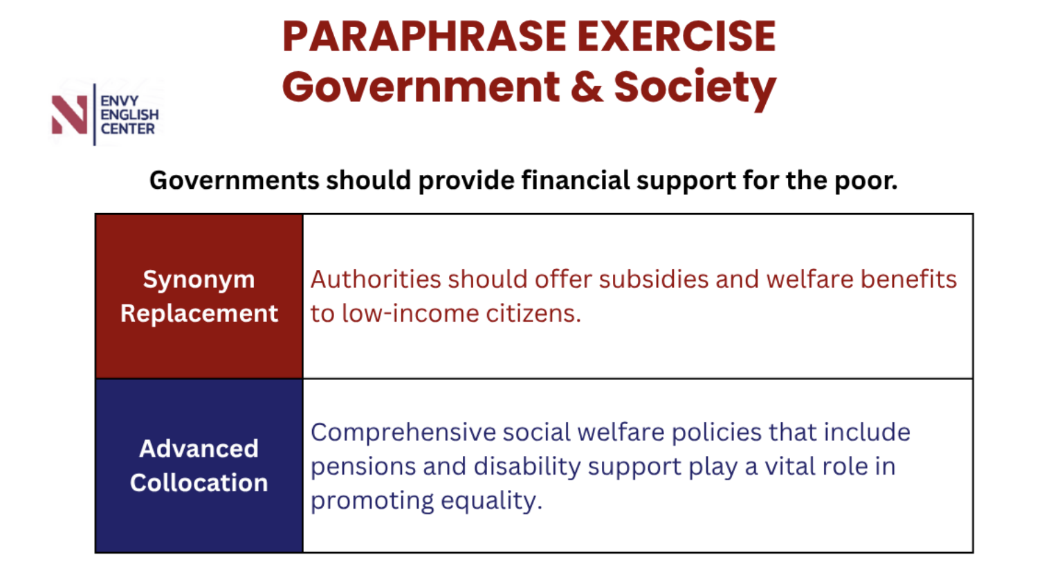 Hãy cùng ENVY luyện tập phương pháp Paraphrase đơn giản, chủ đề “Government & Society - Nhà nước và xã hội” nhé.