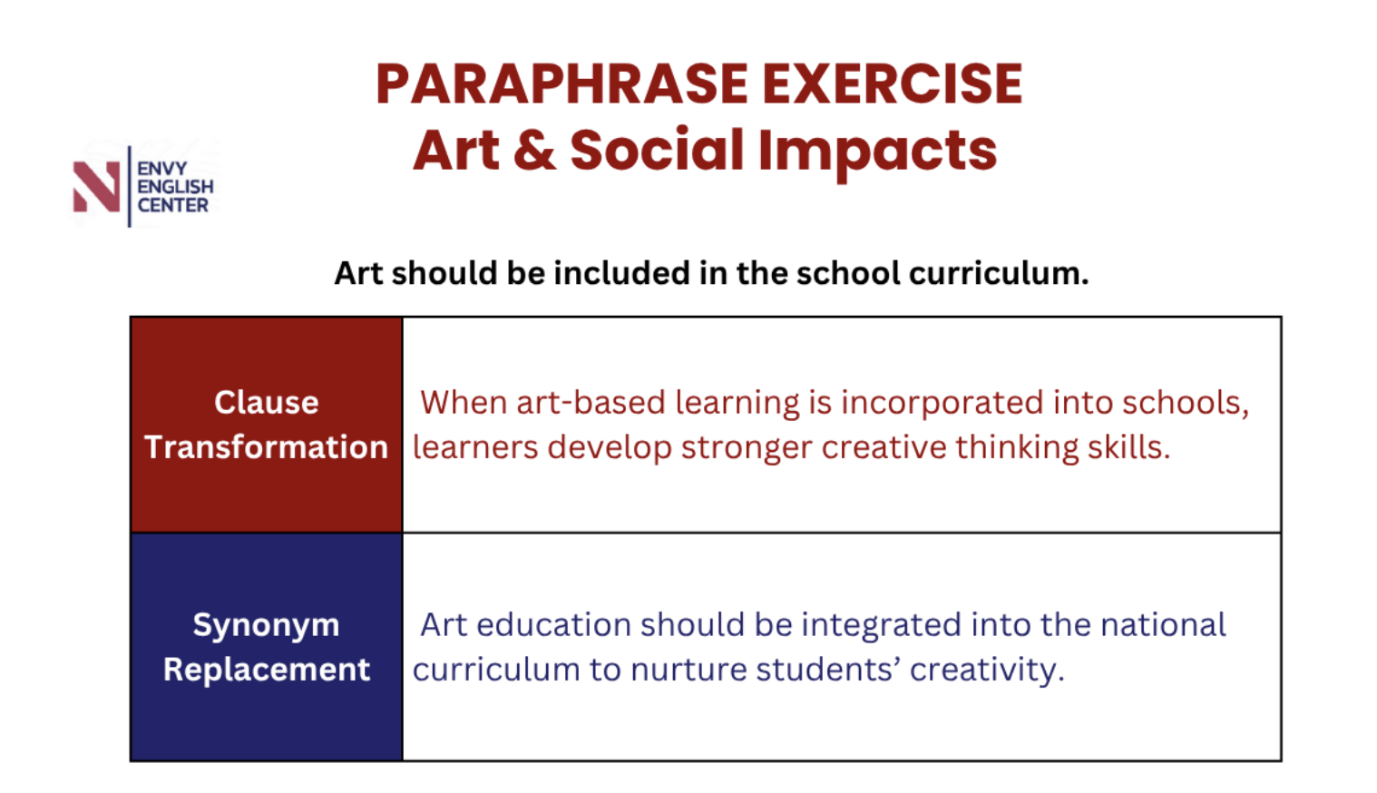 Hãy cùng ENVY luyện tập phương pháp Paraphrase đơn giản, chủ đề “Art & Social Impacts - Nghệ thuật và sức ảnh hưởng” nhé.