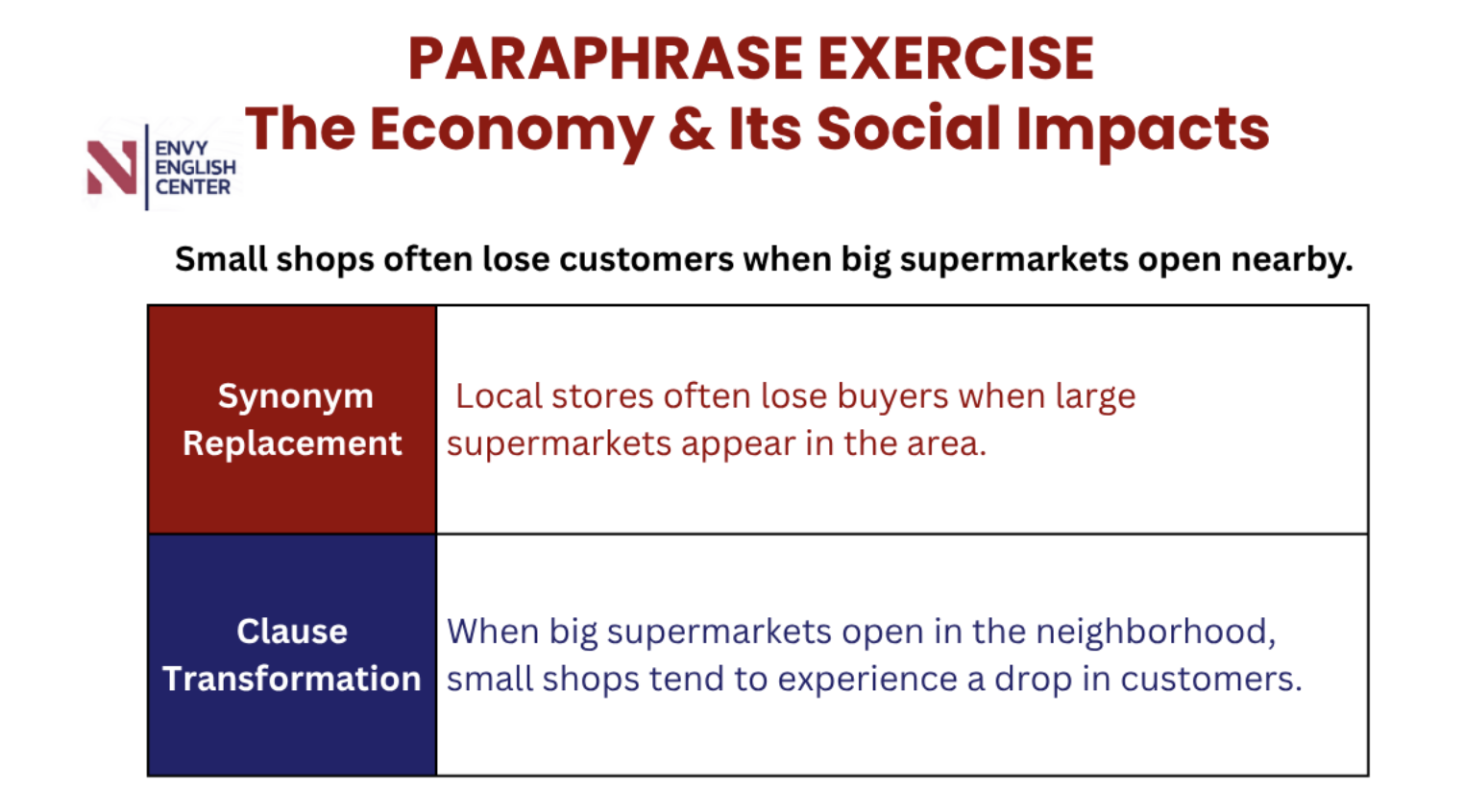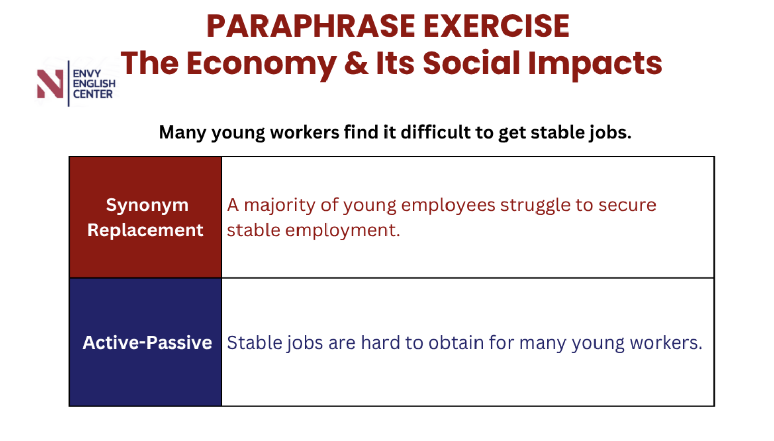 Hãy cùng ENVY luyện tập phương pháp Paraphrase đơn giản, chủ đề “The Economy & Its Social Impacts - Nền kinh tế và những tác động lên xã hội” nhé.