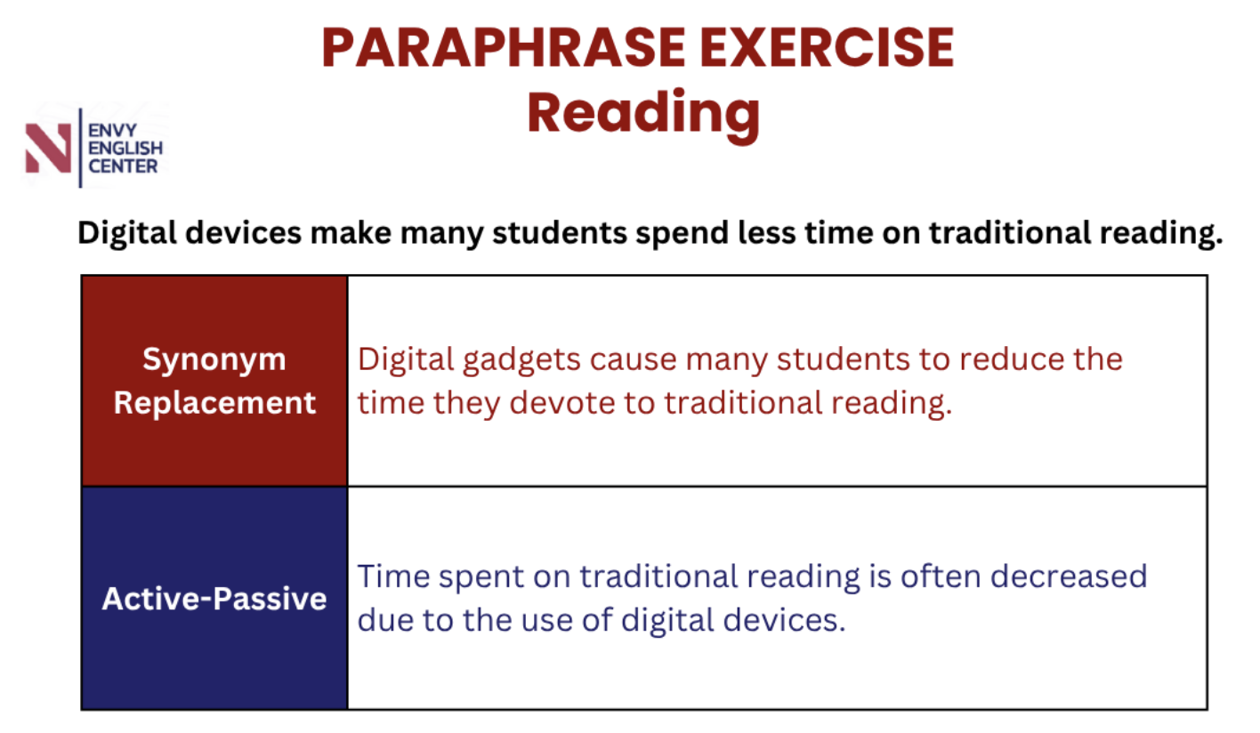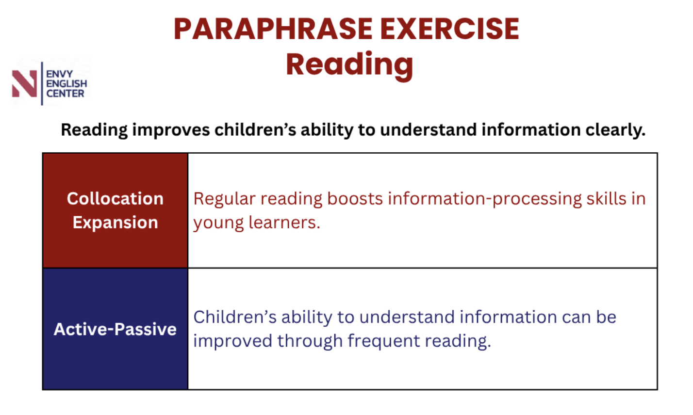 Hãy cùng ENVY luyện tập phương pháp Paraphrase đơn giản, chủ đề “Reading - Tất tần tật về việc đọc ” nhé.