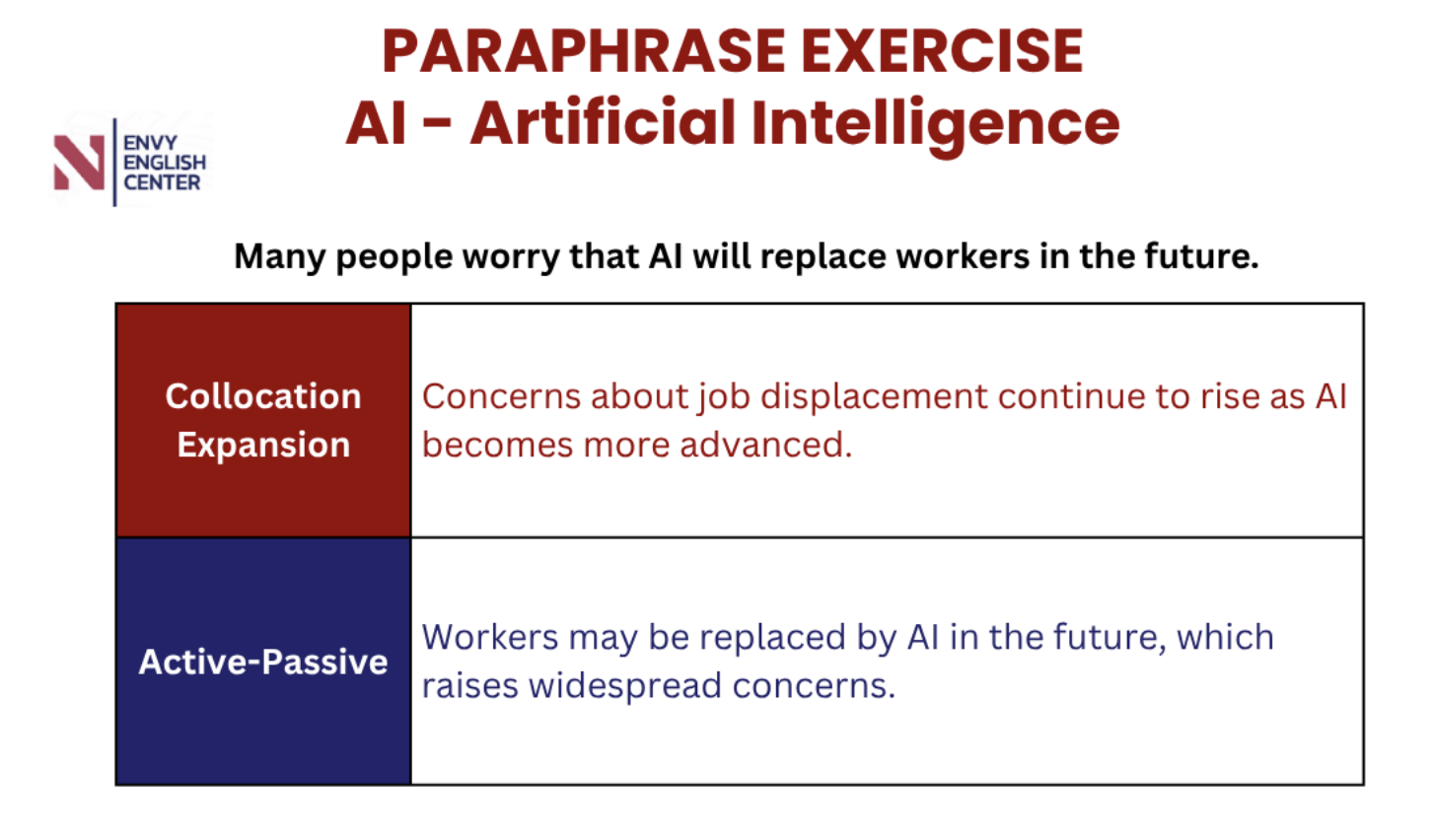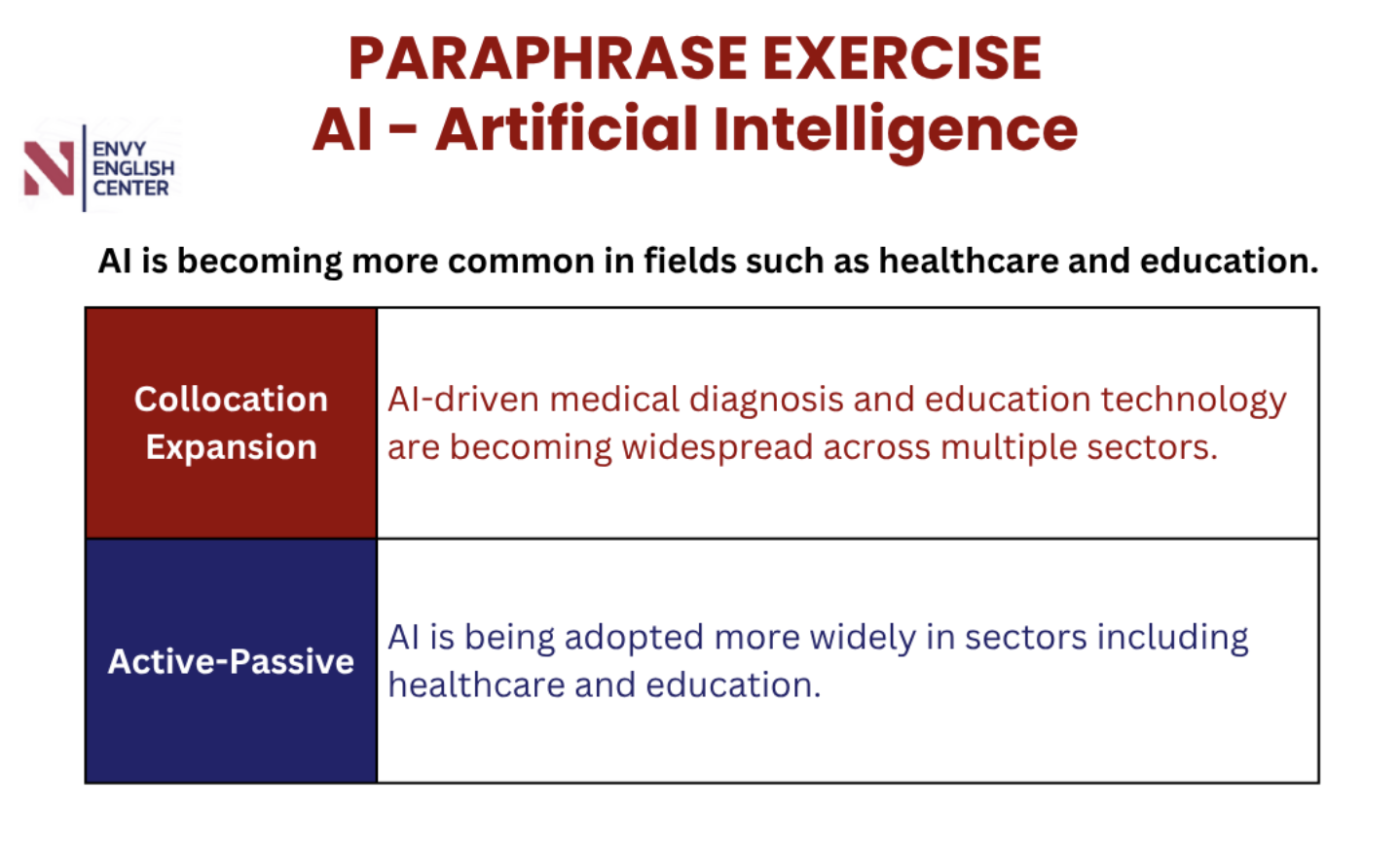 Hãy cùng ENVY luyện tập phương pháp Paraphrase đơn giản, chủ đề “AI - Artificial Intelligence – Trí tuệ nhân tạo” nhé.