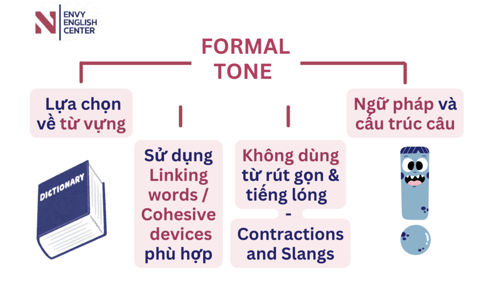Thí sinh cần ưu tiên sử dụng những từ vựng có sắc thái trang trọng và tính học thuật cao, tránh tuyệt đối sử dụng ngôn ngữ thân mật trong văn nói.