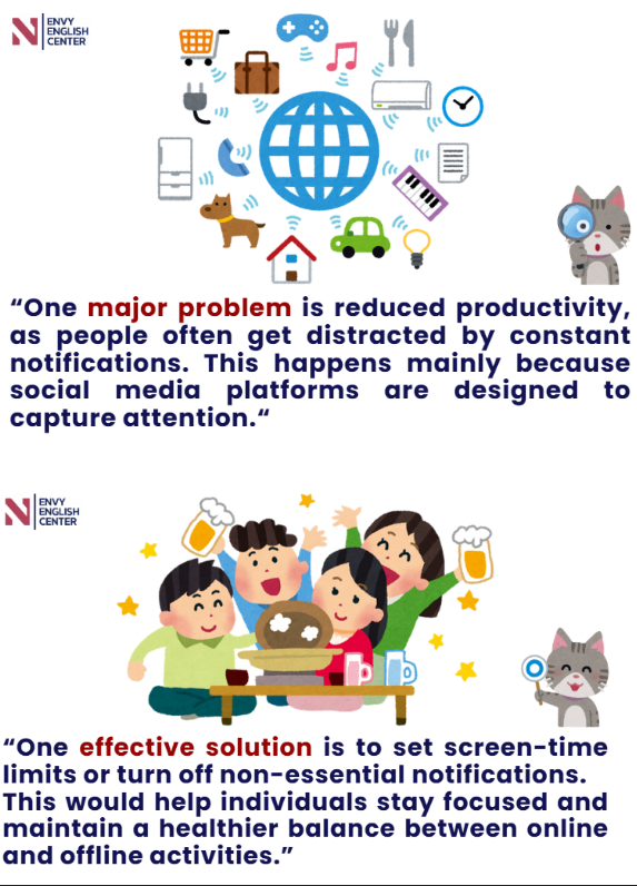 - Nêu giải pháp quá mơ hồ: “People should be more responsible” không phải là giải pháp đủ cụ thể.