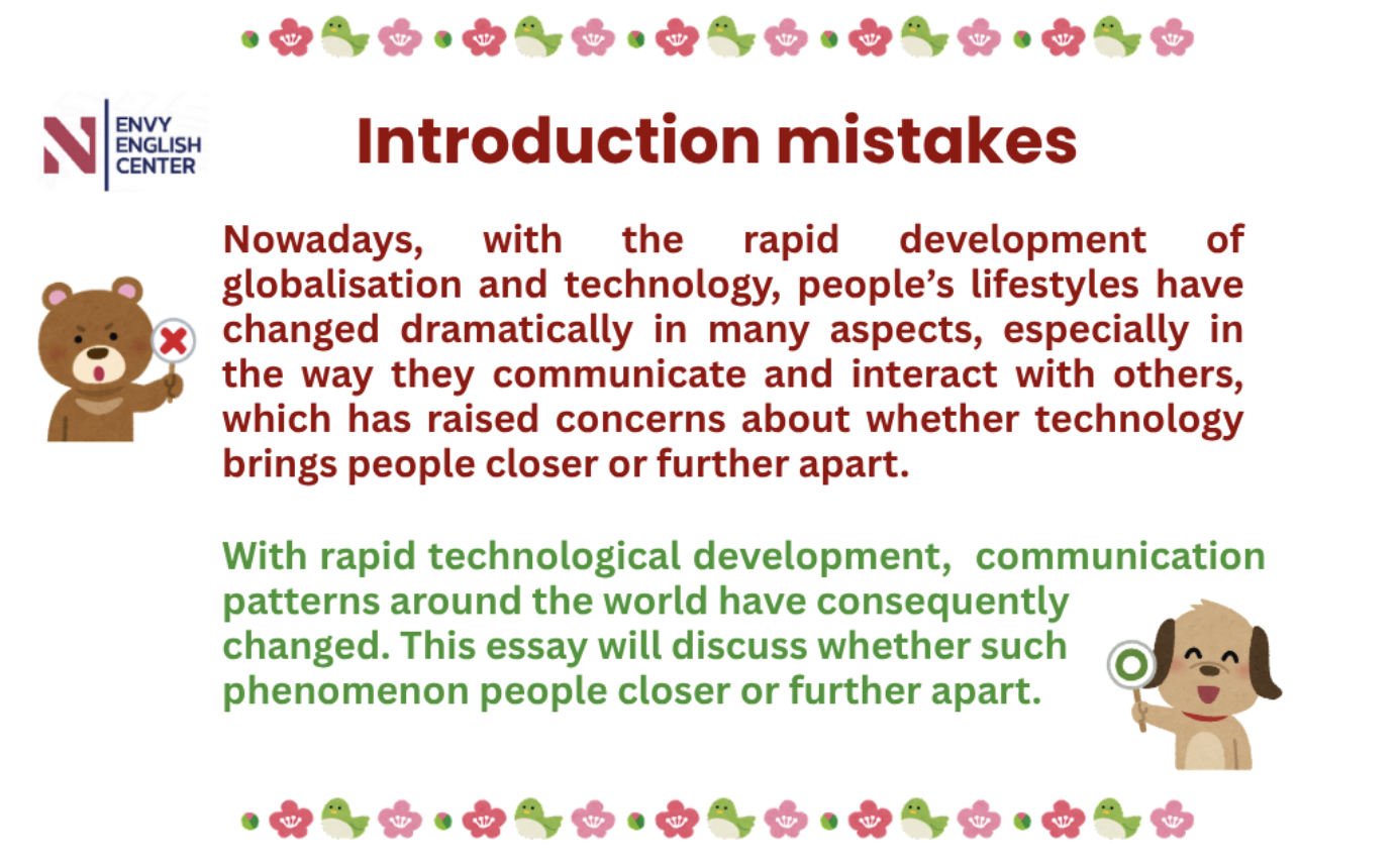 Đừng “đốt cháy giai đoạn”. Hãy để body paragraph làm nhiệm vụ triển khai chi tiết, còn introduction chỉ nêu định hướng.