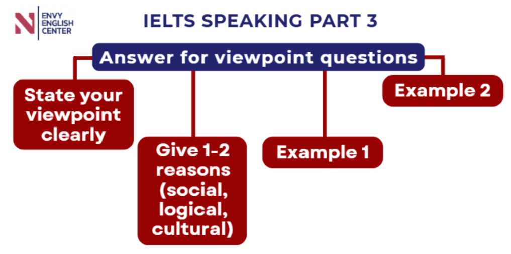 Dạng câu hỏi Viewpoint yêu cầu bạn đưa ra quan điểm rõ ràng và bảo vệ nó bằng lý do có tính khái quát. Examiner không quan tâm bạn “đúng hay sai”, mà quan tâm xem bạn có đạt được những tiêu chí dưới đây hay chưa: